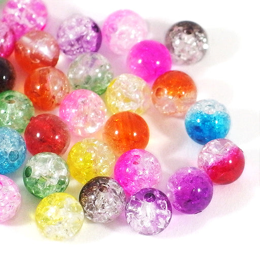 Runda, krackelerade pärlor i transparent akryl, tvåfärgade i färgglad mix.Pärlorna har ett sprucket utseende, vilket reflekterar ljuset på ett väld...