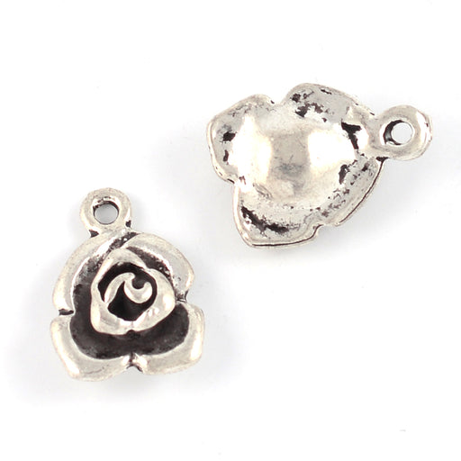 Antikt silverfärgad berlock, ros.Storlek är ca 12 x 12 mm.Tjocklek är ca 6 mm.Håldiameter är ca 1,5 mm.Priset avser 5st.Ej lämplig för barn under t...