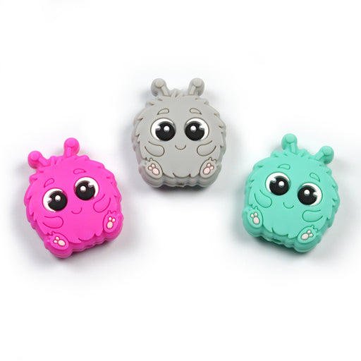 Silikonpärla i form av ett gulligt monster, 100% BPA-fritt silikon. Passar perfekt till bitleksaker, napphållare, vagnhänge, halsband och nyckelrin...