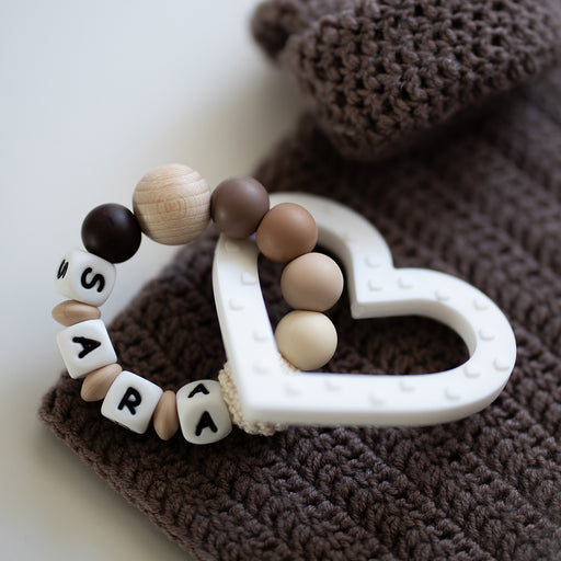 Sedan kan du dra en av silikonpärlorna över knuten. Dra hårt, det går. Knuten försvinner i pärlan nu och kommer inte vara synligt längre.