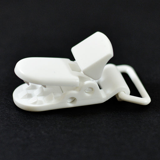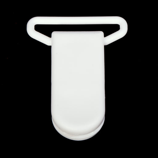 Vitt clips av BPA-fri plast.Storlek på själva clipset är ca 16 x 36 mm.Totalstorlek är ca 30 x 42 mm.Mått i hålet är ca 25 mm.Passar band med storl...