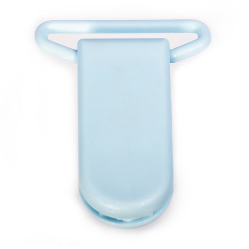 Ljusblå clips av BPA-fri plast.Storlek på själva clipset är ca 16 x 36 mm.Totalstorlek är ca 30 x 42 mm.Mått i hålet är ca 25 mm.Passar band med st...