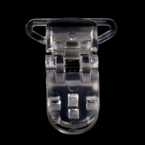 Genomskinligt clips av BPA-fri plast.Storlek på själva clipset är ca 16 x 36 mm.Totalstorlek är ca 30 x 42 mm.Mått i hålet är ca 25 mm.Passar band ...