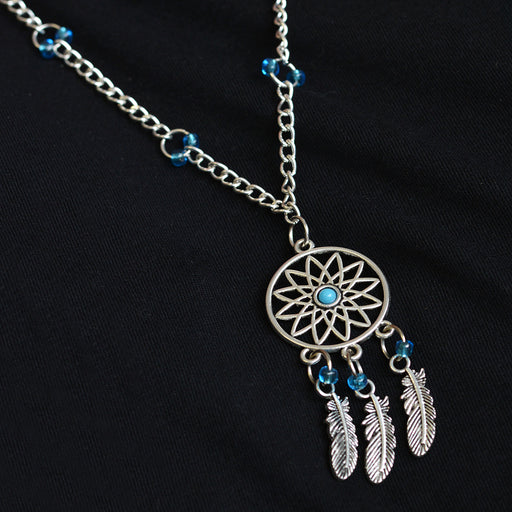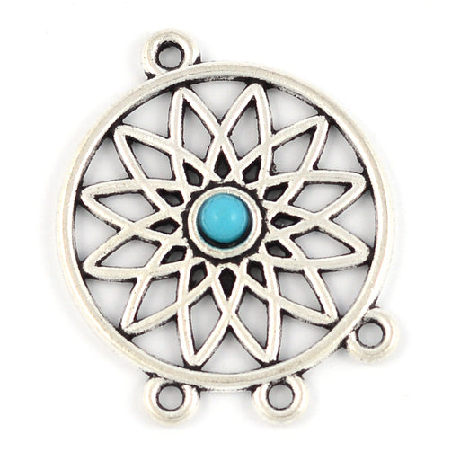 Antikt silverfärgad berlock / connector, drömfångare med en turkos-blå resinpärla i mitten.På underkanten finns tre öglor till, så att man kan häng...