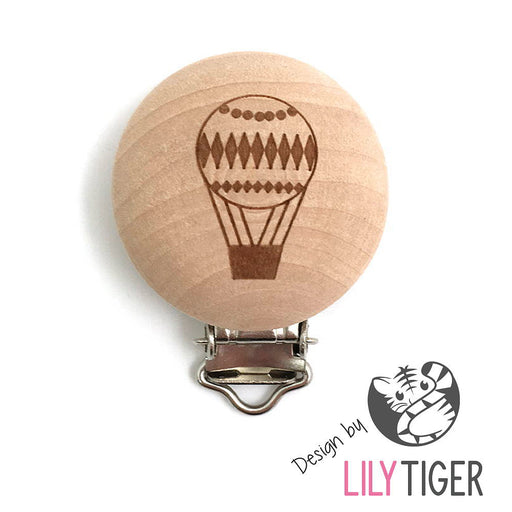 Clips i obehandlat trä med ingraverad luftballong.Design by LilyTiger.Diameter på clipset är ca 35 mm.Priset avser 1 st.Enskild produkt är inte läm...