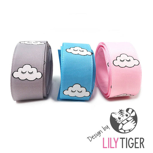 Design by LilyTiger. Ripsband med små vita moln. Passar perfekt till napphållare.Bredd: 22mmAngivet pris avser 1 meter band, välj önskad färg i men...