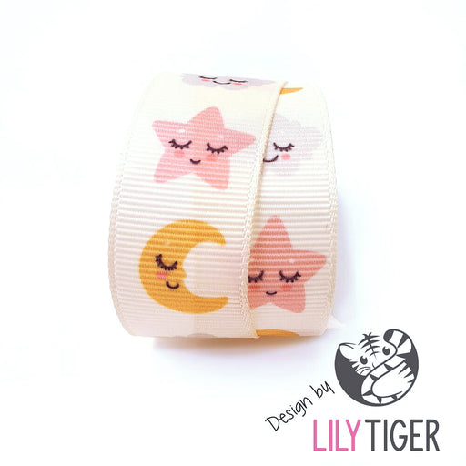 Egendesignat band från LilyTiger. Ripsband med små vita sovande moln. Passar perfekt till napphållare.Bredd: 22mmAngivet pris avser 1 meter band, v...