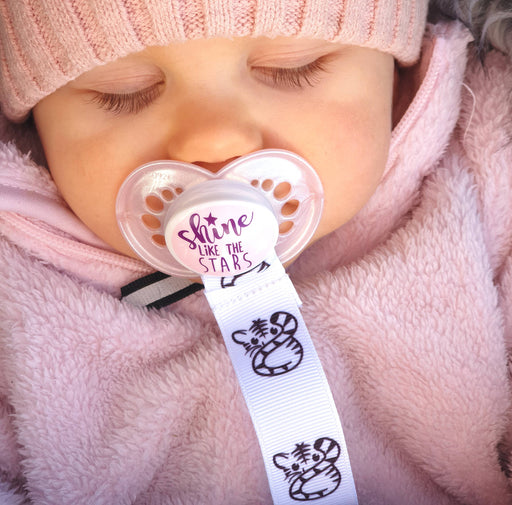 Design by LilyTiger. Ripsband med små vita stjärnor. Passar perfekt till napphållare.Bredd: 22mmAngivet pris avser 1 meter band, välj önskad färg i...