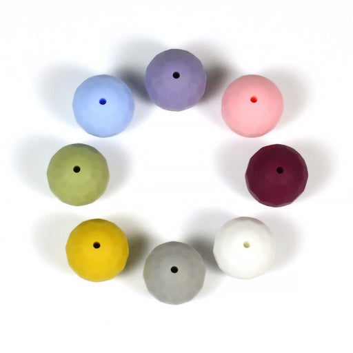 Rund, facetterad silikonpärla, 100% BPA-fri.Uppfyller kraven enligt DIN EN 71-3.Storlek är ca 15 x 16 mm.Håldiameter är ca 1,5 mm.Priset avser 1st....