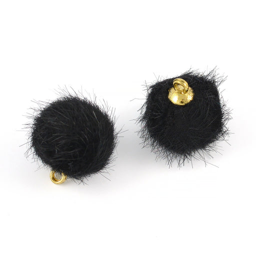 Liten pälsboll i fuskpäls med upphängning.Färg: svartFärg på upphängning: guldDiameter är ca 15 mm plus ögla.Öglans hål är ca 1,5 mm.Priset avser 2...