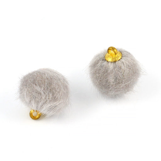 Liten pälsboll i fuskpäls med upphängning.Färg: ivoryFärg på upphängning: guldDiameter är ca 15 mm plus ögla.Öglans hål är ca 1,5 mm.Priset avser 2...