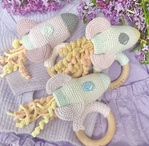 Virka en fin skallra i form av en raket. Mönstret är skapat av vår samarbetspartner Ninni Sjökvist (@ninnisvirkstagram).Mönstret är skrivet på sven...