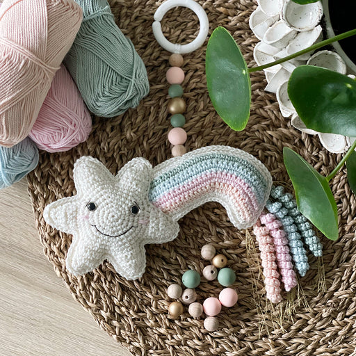 Virka dig ett sött litet vagnhänge!Stjärnfallet Elsie blir lagom stor för att hänga på barnvagnen som de små kan vilaögonen på.Mönstret, som är ska...