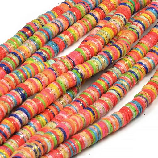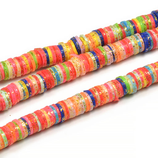 Platta, runda heishi pärlor av polymer med guld-glitter.Färgerna är slumpmässigt mixade.OBS! Glittret som sitter på pärlorna fäller något. Storlek ...