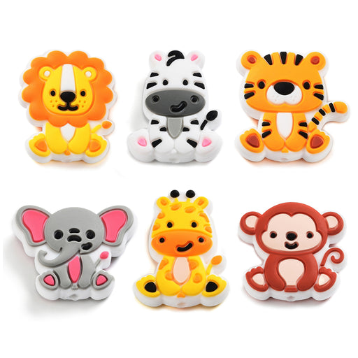 Silikonpärla i form av de sötaste djungeldjuren, 100% BPA-fri.Pärlorna är likadan på båda sidor. Passar perfekt till bitleksaker, napphållare, vagn...