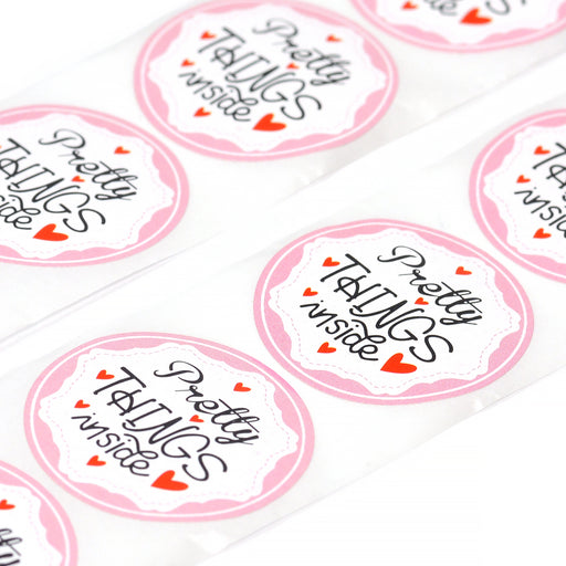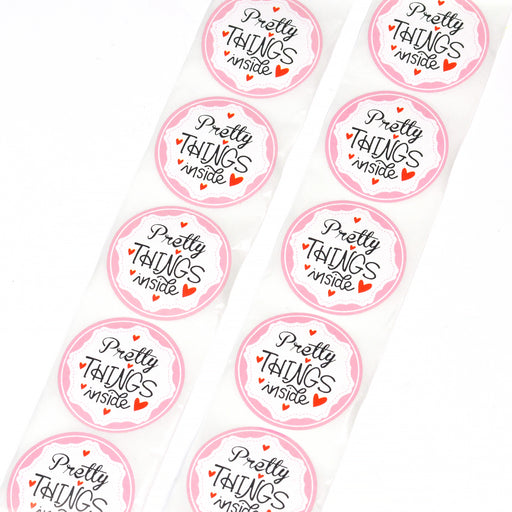 Runda klistermärken med texten "Pretty things inside".Väldigt fint till present eller paketinslagning.Diameter är ca 25 mm.Priset avser 24st kliste...