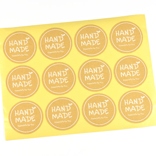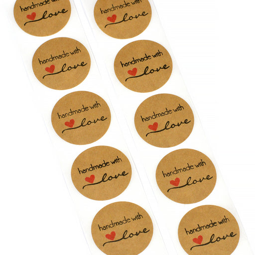 Runda klistermärken av naturligt papper med texten "handmade with love".Diameter är ca 25 mm.Priset avser 24st klistermärken.Ej lämplig för barn un...