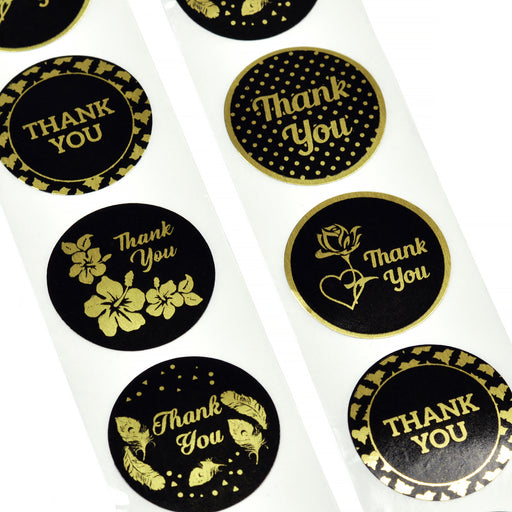 Visa fullständig informationSvarta klistermärken med guld "Thank you", 25mm, 20st