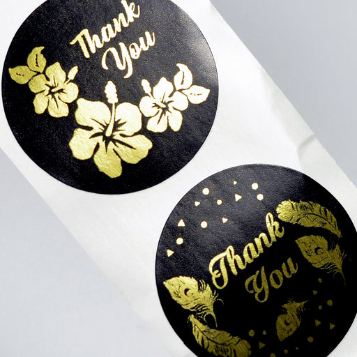 Svarta, runda klistermärken med guld-metallic text "Thank you".Det är 5 olika design på klistermärken.Diameter är ca 25 mm.Priset avser 20st kliste...