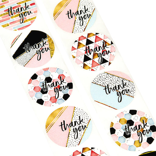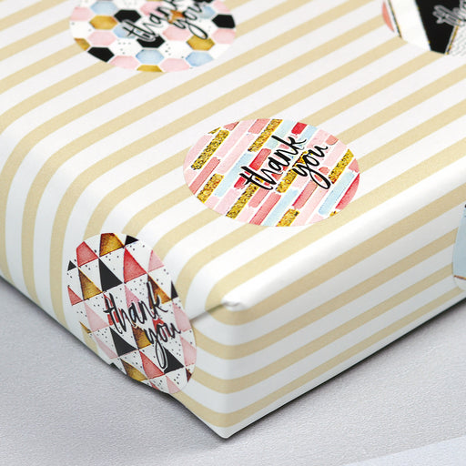 Runda klistermärken med olika grafiska element och texten "thank you".Det är 8 olika design på klistermärken.Diameter är ca 25 mm.Priset avser 24st...