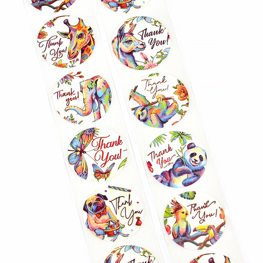 Runda klistermärken med olika djurmotiv i glada färger och texten "thank you".Det är 8 olika design på klistermärken.Diameter är ca 25 mm.Priset av...