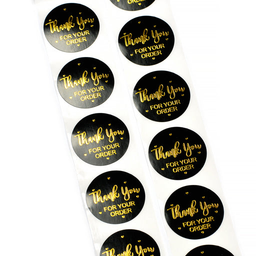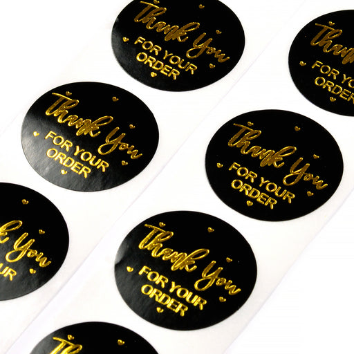 Runda klistermärken, svart med glansig, guld text "Thank you for your order".Diameter är ca 25 mm.Priset avser 24st klistermärken.Ej lämplig för ba...