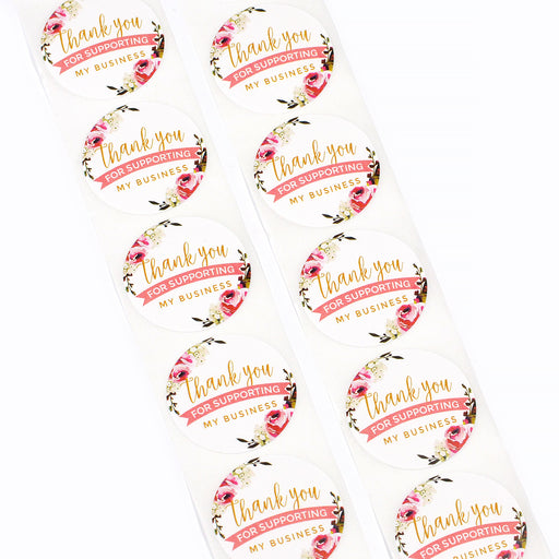 Klistermärken med blommor "thank you for supporting my business", 25mm, 24st