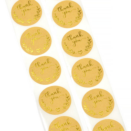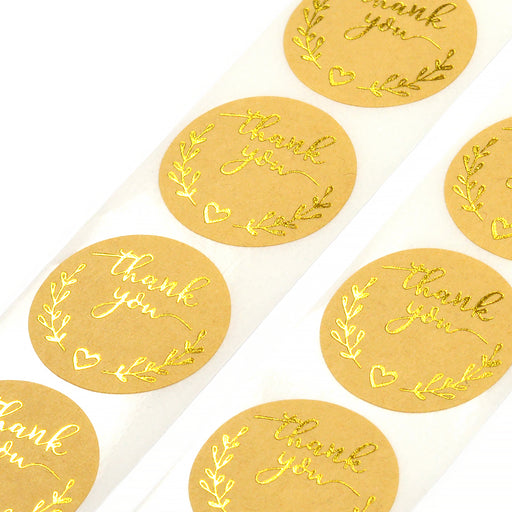 Runda klistermärken av naturligt papper med glansig, guld text "thank you".Diameter är ca 25 mm.Priset avser 24st klistermärken.Ej lämplig för barn...
