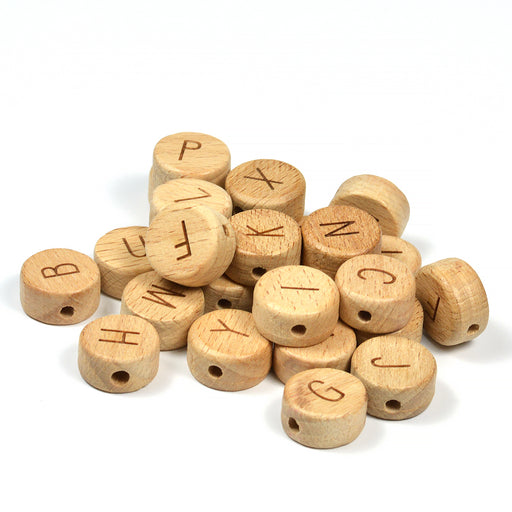 Platta, runda pärlor i obehandlat trä med ingraverade bokstäver A–Z.*Design*-variant med fina bokstäver och lite rundare kanter.Du väljer önskad bo...
