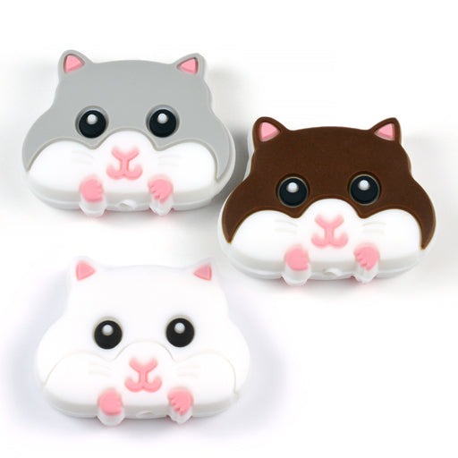 Silikonpärla i form av en gullig hamster, 100% BPA-fri.Pärlan har samma motiv på båda sidor.Storlek är ca 31 x 25 mm.Tjocklek är ca 8 mm.Håldiamete...