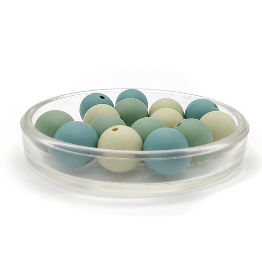 Visa fullständig informationSet med silikonpärlor, "blå/grå/granit", 15mm, 15-pack