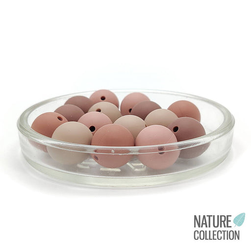 Visa fullständig informationSet med silikonpärlor, "earth tones", 15mm, 15-pack