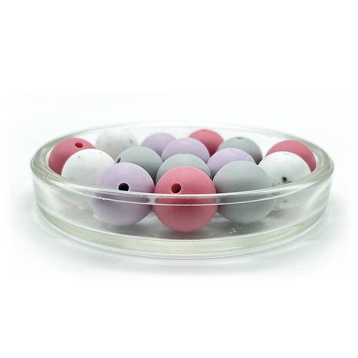 Visa fullständig informationSet med silikonpärlor, "mauve/lavendel/granit", 15mm, 15-pack