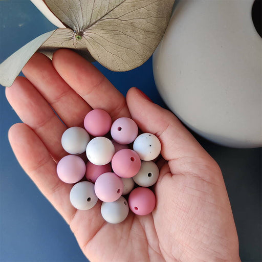 Visa fullständig informationSet med silikonpärlor, "rosa mix", 15mm, 15-pack