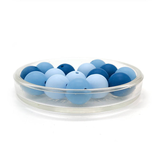 Visa fullständig informationSet med silikonpärlor, "blå mix", 15mm, 15-pack