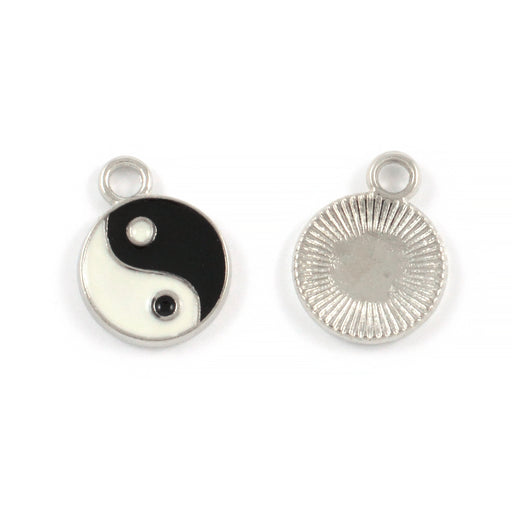 Berlock, platinafärgad Yin och Yang symbol med svart och vit emalj.Diameter är ca 12 mm (plus ögla).Tjocklek är ca 2 mm.Håldiameter är ca 2,5 mm.Pr...