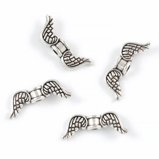 Antiksilverfärgade änglavingar.Storlek är ca 18 x 7 mm.Tjocklek är ca 3 mm.Håldiameter är ca 2 mm.Priset avser en påse med 10 st.