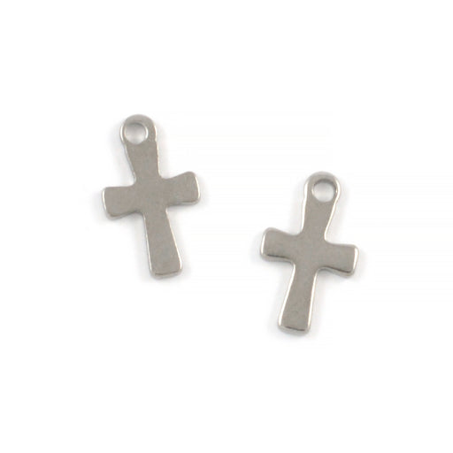 Berlock i rostfritt stål, litet kors.Storlek är ca 7 x 12 mm (inkl ögla).Tjocklek är ca 1 mm.Håldiameter är ca 1,5 mm.Priset avser 5st.Ej lämplig f...