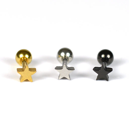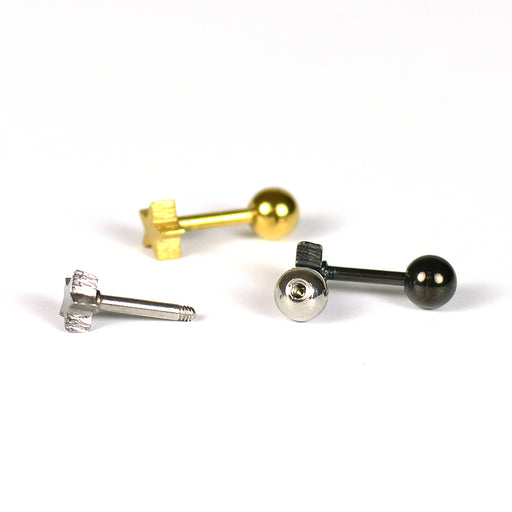 Örhänge / piercing i rostfritt stål med stjärna och avtagbar kula.Kulans diameter är ca 4 mm.Stjärnan är ca 4 mm stor.Stiftets tjocklek är ca 1,1 m...