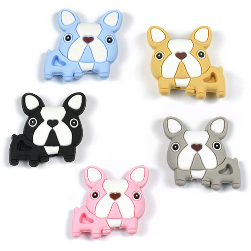 Silikonpärla i form av en hund / bulldogg, 100% BPA-fri.Pärlan har samma motiv på båda sidor.Storlek är ca 30 x 29 mm.Tjocklek är ca 7,5.Håldiamete...