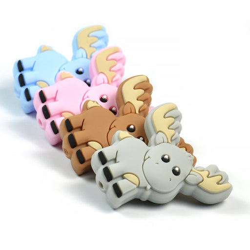 Silikonpärla i form av en söt liten älg, 100% BPA-fri.Pärlan har samma motiv på båda sidor.Storlek är ca 29 x 30 mm.Tjocklek är ca 10 mm.Håldiamete...