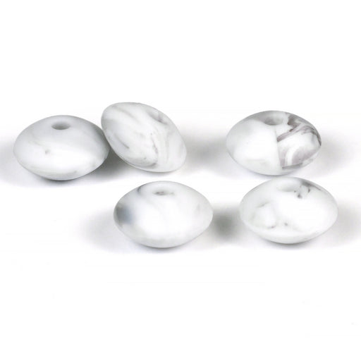 Linsformade silikonpärlor, 100% BPA-fri.Storlek är ca 12 x 7 mm.Håldiameter är ca 2 mm.Priset avser 5st linser.Tänk på att alla marmorpärlor har ol...