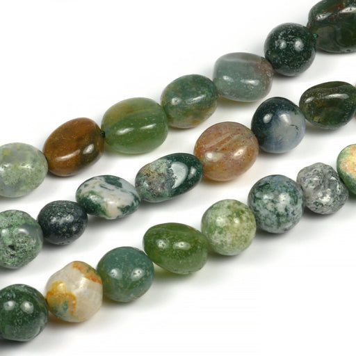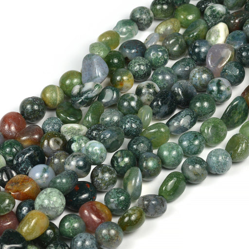 Mossagat pärlor, även kallade för dendrit agat, i vackra, mörka grön nyanser och i form av nuggets.Alla pärlor är olika i sin form och storlek, vil...