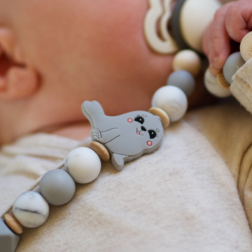 Silikonpärla i form av en säl, 100% BPA-fri.Pärlan har samma motiv på båda sidor.Storlek är ca 32 x 30 mm.Tjocklek är ca 8 mm.Håldiameter är ca 2 m...