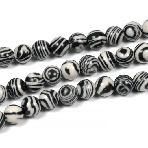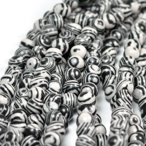 Visa fullständig informationSyntetiska malakit pärlor, svart-vit, 6mm