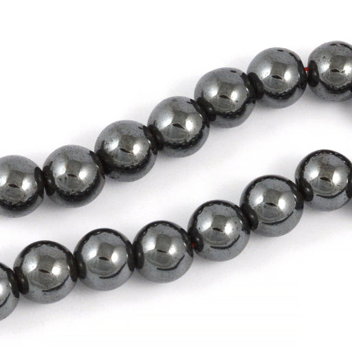 Syntetiska hematit pärlor, ej magnetiska.Diameter är ca 8 mm.Håldiameter är ca 1 mm.Priset avser en sträng på ca 50 st pärlor.