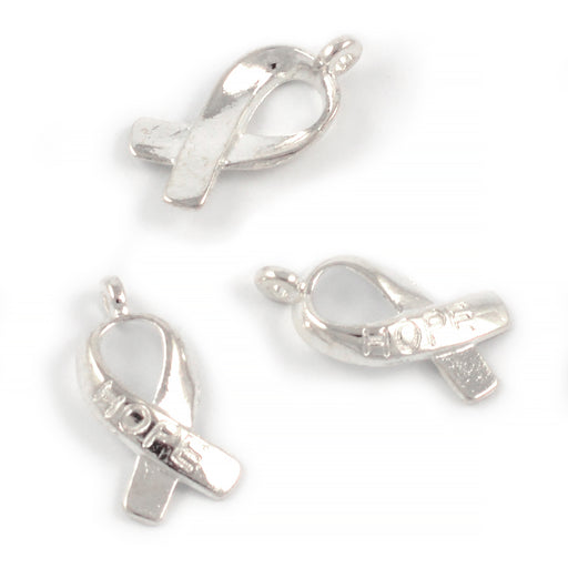 Silverfärgad berlock, awareness symbol med texten "hope".Storlek är ca 8 x 14 mm (plus ögla).Tjocklek är ca 2 mm.Håldiameter är drygt 1 mm.Priset a...