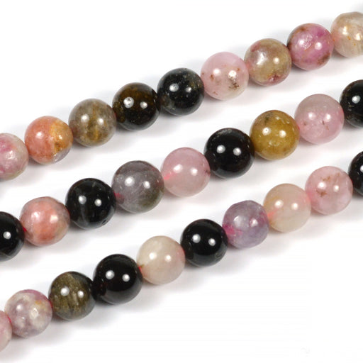 Turmalin pärlor i olika färger och nyanser och med fin struktur i varje pärla.Turmalin är den ädelsten som kan uppvisa flest färger, den kan ha ski...