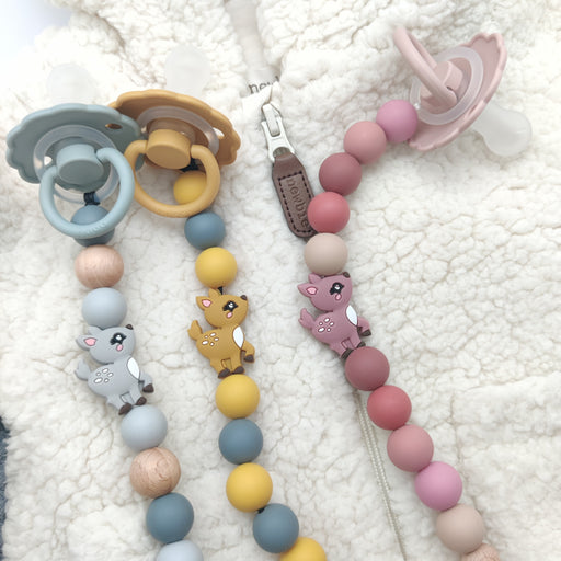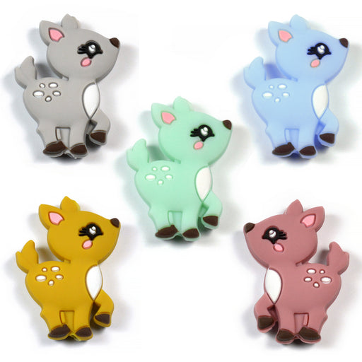 Silikonpärla i form av en söt liten rådjurskid, 100% BPA-fri.Kidmotiv på båda sidor.Storlek är ca 25 x 32 mm.Tjocklek är ca 7,5 mm.Håldiameter är d...