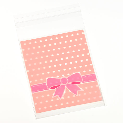 Söta plastpåsar med rosett på framsidan och korall med vita prickar på baksidan.Storlek är ca 8 x 12 cm.Användbar storlek är ca 8 x 10 cm.Välj önsk...